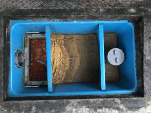 グリストラップ清掃にグリストラップに接続する配管清掃が付いてるのが安心とのことでのご依頼です。