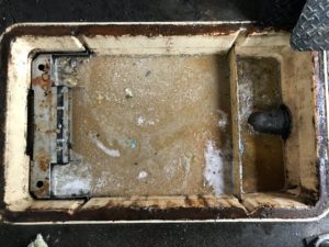 本日は,福岡市中央区某焼き鳥店様のグリストラップ清掃作業を行いました。