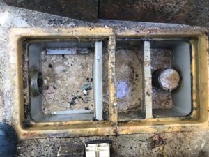 本日は福岡県福津市某ラーメン店様のグリストラップ清掃作業を行いました。