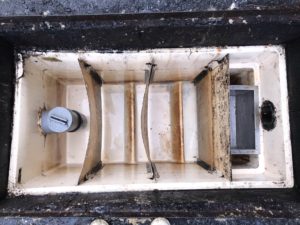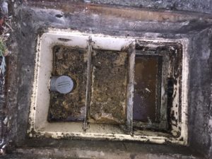 本日は,福岡市東区某飲食店集合施設様のグリストラップ清掃作業を行いました。