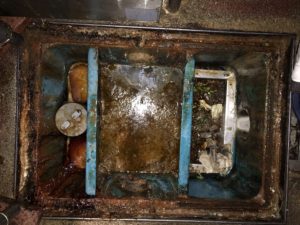 本日は,福岡市中央区某居酒屋店様のグリストラップ清掃作業を行いました。