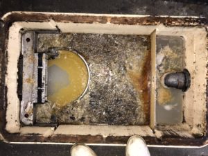 本日は,福岡市中央区某焼き鳥店様のグリストラップ清掃作業を行いました。