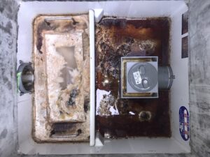 本日は,福岡市博多区某鳥の唐揚げ専門店様のグリストラップ清掃作業を行いました。