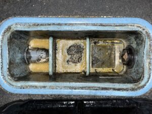 本日は,福岡市中央区某ビストロ店様のグリストラップ清掃作業を行いました。