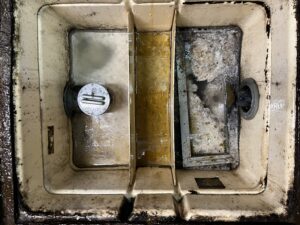 本日は、福岡市南区某日本料理店様のグリストラップ清掃作業を行いました。