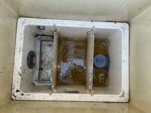 本日は,福岡市博多区某保育園様のグリストラップ清掃作業を行いました。 2ヶ月に1回の定期清掃です。