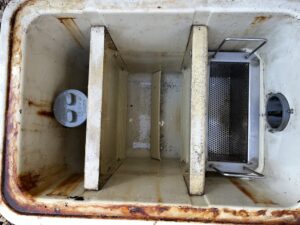 本日は,佐賀県佐賀市某老人ホーム様のグリストラップ清掃作業を行いました。