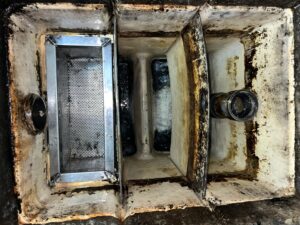 本日は,福岡市中央区某回転寿司様のグリストラップ清掃作業を行いました。