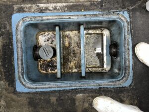 本日は,福岡市城南区某焼き鳥店様のグリストラップ清掃作業を行いました。