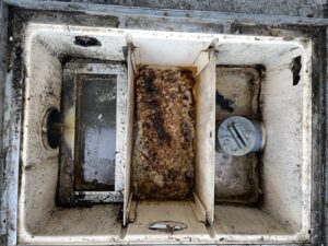 本日は,福岡市博多区某老人ホーム様のグリストラップ清掃作業を行いました。