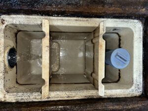 本日は,福岡市西区フレンチレストラン様のグリストラップ清掃作業を行いました。