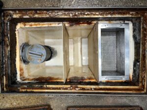 本日は,福岡市中央区某焼鳥店様のグリストラップ清掃作業を行いました。
