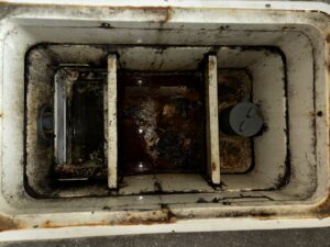 本日は、福岡県糸島市某老人ホーム様のグリストラップ清掃作業を行いました。