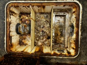 本日は,福岡市西区某お弁当専門店様のグリストラップ清掃作業を行いました。