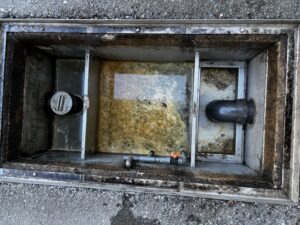 本日は、福岡県大野城市某保育園様のグリストラップ清掃作業を行いました。