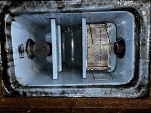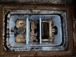 本日は,福岡市中央区某コンビニ店様のグリストラップ清掃作業を行いました。