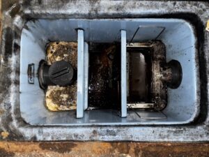 本日は,福岡市中央区某コンビニ店様のグリストラップ清掃作業を行いました。