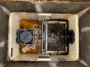 本日は,福岡県古賀市某レンタルキッチン様のグリストラップ清掃を行いました。