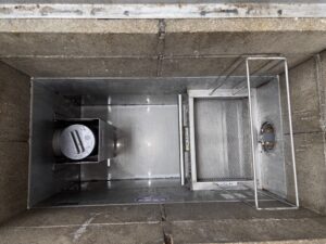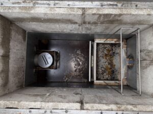 本日は,福岡市中央区某精肉店様のグリストラップ清掃作業を行いました。
