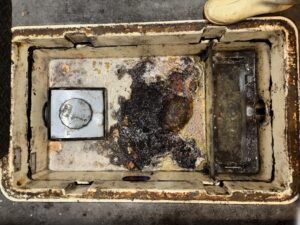 福岡市中央区某カフェ店様のグリストラップ清掃作業